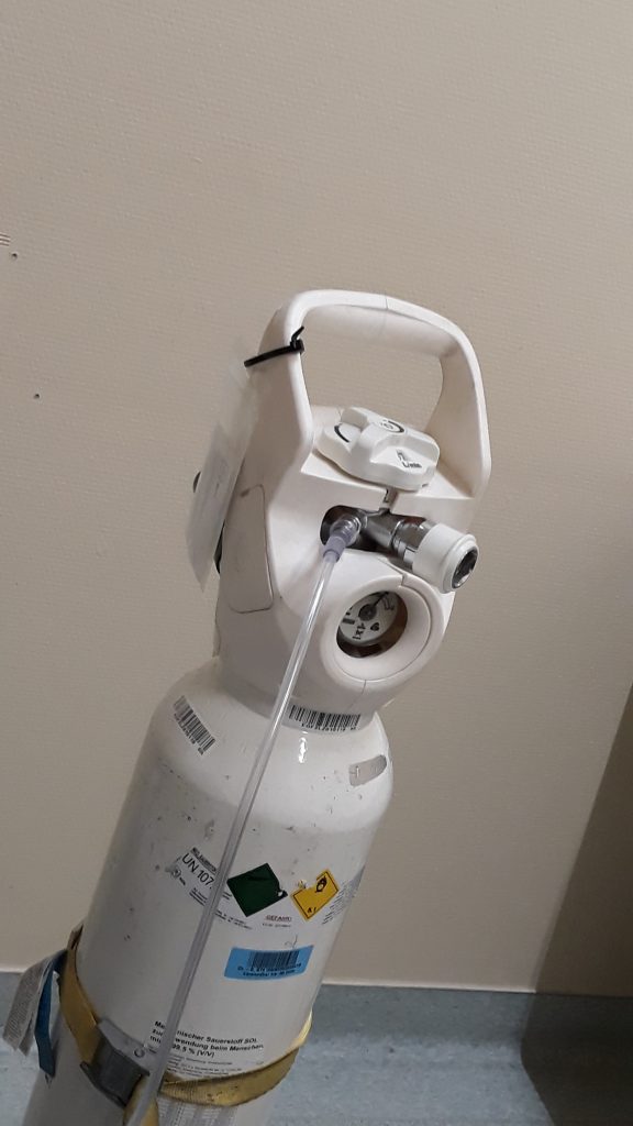 Um eine innere Kopfverletzung auszuschließen ordnet sie ein CT an und zum Lunge röntgen soll ich auch auf jeden Fall. Die beständige Frage nach Luftnot, Beklemmungen im Brustkorb, Atemschwierigkeiten erklärt sich daher. In der Lunge wird zu wenig Sauerstoff ins Blut angereichert obwohl ich inzwischen an deinem Schlauch hänge, der mir diesen in Reinform direkt in die Nase bläst.