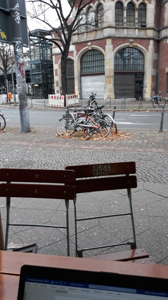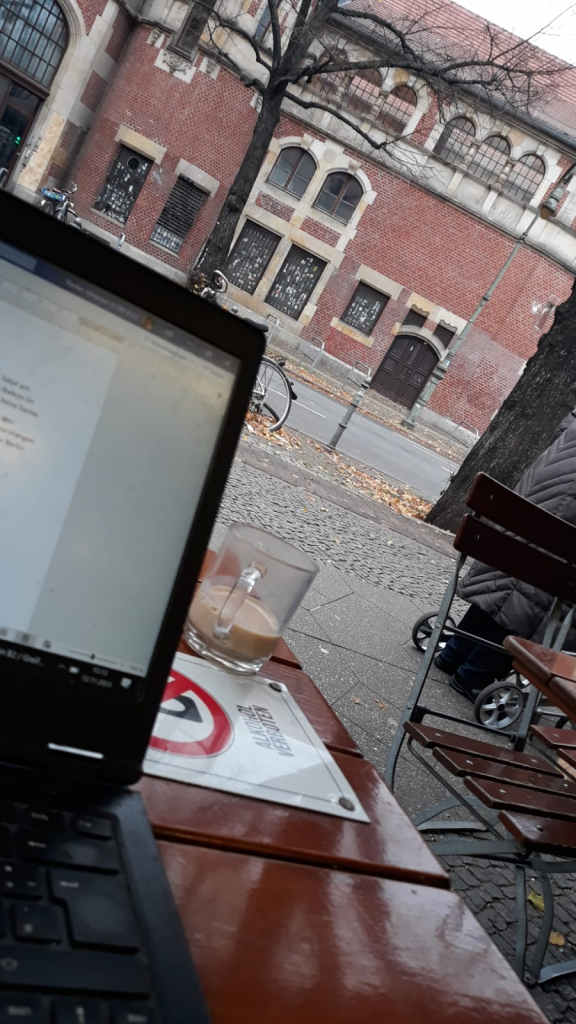 The Marth mit ihrer Hedi und Sippe beim Alba Spiel, ich über die Oberbaumbrücke zu Salut am Schlesi. Die Wunde ist der Ort der Heilung, also auf nach X-Berg, wenn schon mein Zen-Balkon im November nicht mehr wirklich der Platz zum Schreiben ist und ‚draußen‘ trotzdem eine feine Sache.